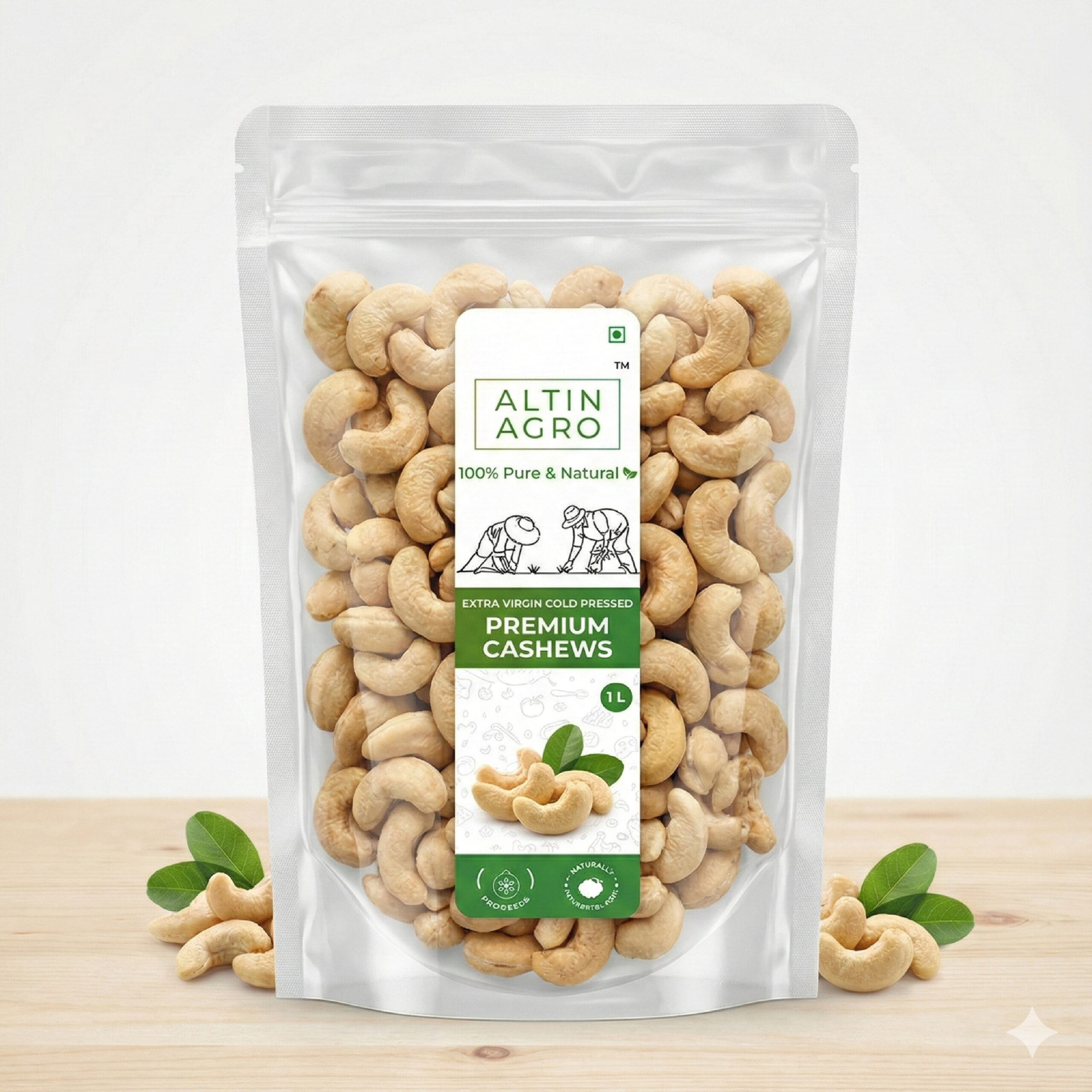 ALTIN AGRO Premium Cashews are carefully selected for size, freshness, and taste. Naturally rich in nutrients, these cashews are perfect for healthy snacking, cooking, or gifting.